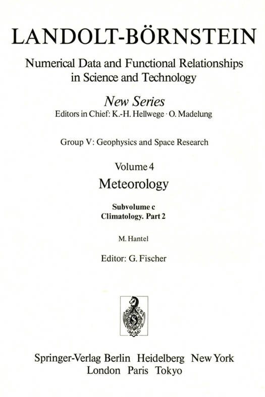 Volume V/4 of the New Series covers the field of meteorology as the physics of the atmosphere in several subvolumes. The first, V/4a "Thermodynamical and dynamical structures of the global atmosphere", appeared in 1986. It was followed by subvolume V/4b dealing with the physical and chemical data of the atmosphere. Subvolume V/4c, which appears in two parts, is concerned with the physical and meteorological aspects of climate. During the last decade, questions related to climate have met with an increased interest, since anthropogenic climate modifications on time-scales of 100 years are now considered conceivable. The first part of this subvolume, i.e. V/4c1 (1987) contains contributions on climate definition, specific surfaces climates, climate variations, and the planetary boundary layer. The second part, V/4c2, presented here, consists of two chapters: "Climate modeling" and "The present global surface climate". The contribution on "Climate modeling" attempts to explain the structure and physical basis of mathematical models which nowadays play a leading role in the discussion of climate, since they appear most appropriate to improve our understanding of the mechanisms of climate and to forecast possible changes. The chapter "The present global surface climate" contains a representative selection of observed climate elements and phenomena near the ground.