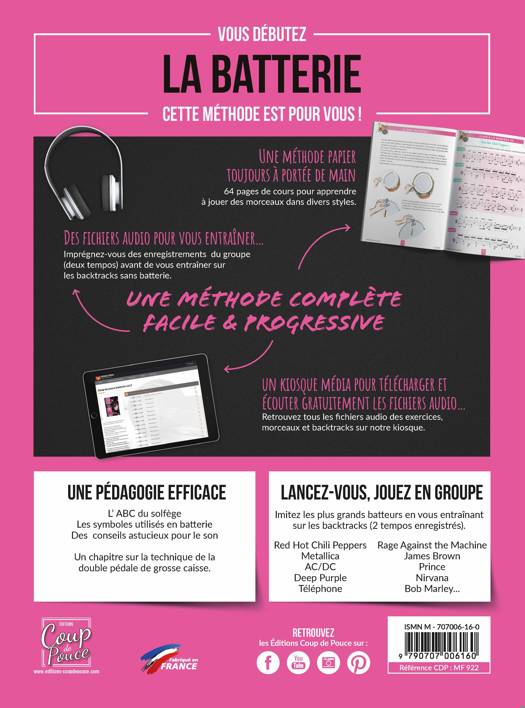 Un chapitre consacré au jeu de la double pédale de grosse caisse vous permettra de maîtriser cette technique souvent utilisée par les batteurs.