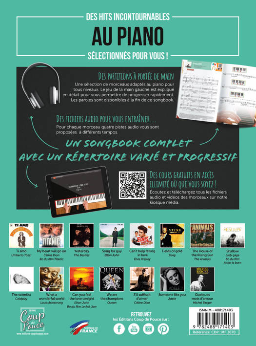 Ce songbook piano spécial pop et cinéma, s’adresse aux pianistes de niveau débutant, intermédiaire ou avancé, désireux de jouer un répertoire varié et d’acquérir les bases de l’harmonie pour jouer des hits incontournables de la variété internationale.