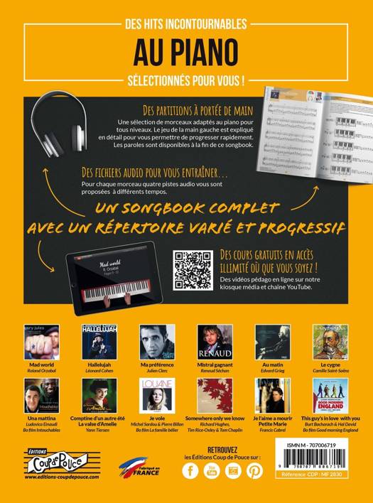 1 livre de 72 pages + fichiers audio et vidéos sur notre kiosque média Ce recueil s’adresse aux pianistes de niveau débutant, intermédiaire ou avancé, désireux de jouer un répertoire varié et d’acquérir les bases de l’harmonie pour jouer des mélodies connues.