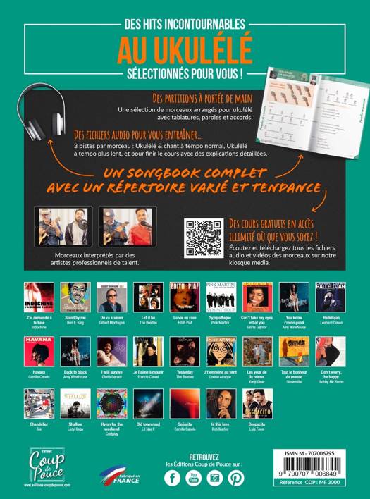 1 livre de 96 pages + les fichiers audio et vidéos sur notre kiosque média Que vous soyez débutant(e) ou musicien(ne) expérimenté(e), notre songbook vous offre une sélection soigneusement choisie de morceaux, comprenant des classiques intemporels et des hits tendance spécialement arrangés pour le ukulélé.