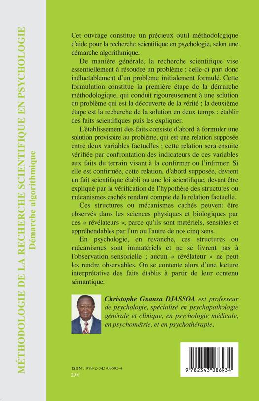 Cet ouvrage constitue un précieux outil méthodologique d'aide pour la recherche scientifique en psychologie, selon une démarche algorithmique. De manière générale, la recherche scientifique vise essentiellement à résoudre un problème. En psychologie, les structures ou mécanismes sont immatériels et ne se livrent pas à l'observation sensorielle. On se contente alors d'une lecture interprétative des faits établis à partir de leur contenu sémantique.