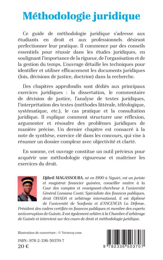Ce guide de méthodologie juridique s'adresse aux étudiants en droit et aux professionnels désirant perfectionner leur pratique. Il commence par des conseils essentiels pour réussir dans les études juridiques, en soulignant l'importance de la rigueur, de l'organisation et de la gestion du temps. L'ouvrage détaille les techniques pour identifier et utiliser efficacement les documents juridiques (lois, décisions de justice, doctrine) dans la recherche. Des chapitres approfondis sont dédiés aux principaux exercices juridiques: la dissertation, le commentaire de décision de justice, l'analyse de textes juridiques, l'interprétation des textes (méthodes littérale, téléologique, systématique, etc.), le cas pratique et la consultation juridique. Il explique comment structurer une réflexion, argumenter et résoudre des problèmes juridiques de manière précise. Un dernier chapitre est consacré à la note de synthèse, exercice clé dans les concours, qui vise à résumer un dossier complexe avec objectivité et clarté. En somme, cet ouvrage constitue un outil précieux pour acquérir une méthodologie rigoureuse et maîtriser les exercices du droit.