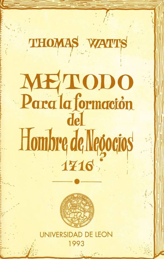 Título: Método para la formación del hombre de negocios. 1716 Autor: Thomas Watts ISBN/ISSN: 978-84-7719-389-0 Depósito legal: Dimensiones: 18cm Nº de páginas: 31,43,37 Año: 1993