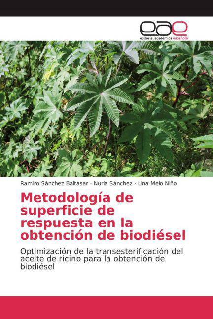 En este libro estudiamos la optimización de la reacción de transesterificación del aceite de ricino para la obtención de biodiésel. Se aplican diseños estadísticos tipo superficie de respuesta, utilizando metanol como alcohol y metóxido potásico como catalizador, con el fin de conseguir una ecuación empírica capaz de predecir el contenido en ésteres metílicos en función de las variables concentración de catalizador, relación molar metanol: aceite, temperatura y tiempo, determinando así las condiciones óptimas que lleven al mayor contenido en ésteres metílicos. Estas condiciones fueron: 0.064 mol·L-1 de catalizador, una relación molar metanol: aceite de 18.8, una temperatura de 45ºC y un tiempo de reacción de 10 min. Finalmente, el porcentaje de ésteres metílicos alcanzado fue de 97.0%.