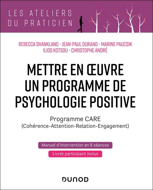 L’ouvrage présente le programme de psychologie positive appliquée   CARE (Cohérence - Attention - Relation - Engagement). Ce programme innovant dans le domaine de psychologie propose aux participants pendant 8  séances de 2h diverses pratiques favorisant 1) la réorientation de l’attention vers les aspects constructifs du quotidien, 2) le développement de la bienveillance envers soi, autrui et l’environnement, 3) l’identification des valeurs et l’engagement dans des actions en lien avec celles-ci, augmentant par-là la satisfaction et le sens de la vie. Ces pratiques ont été validées par des recherches en psychologie positive et ont montré leur efficacité en termes d’amélioration du bien-être et de réduction du stress, des symptômes anxieux et dépressifs.