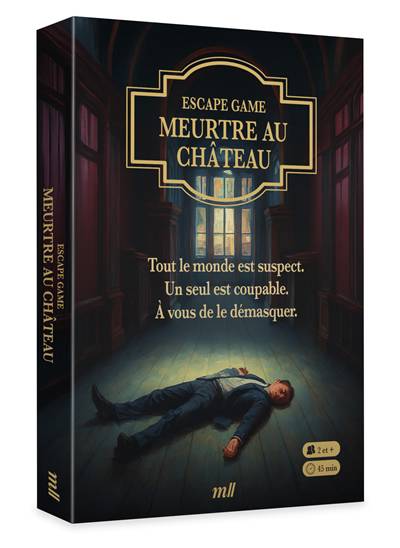 Un coffret d'escape game dont le but est de résoudre un meurtre en huis clos dans un château à l'aide de cinquante cartes, d'un plan de la demeure, d'un arbre généalogique, d'un livre de scénario, un autre contenant les solutions et un carnet de notes.