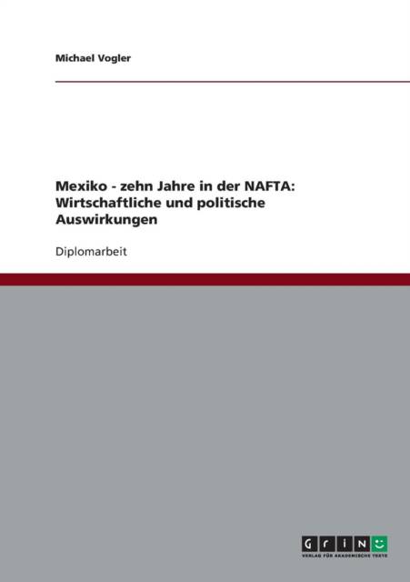 Diplomarbeit aus dem Jahr 2004 im Fachbereich Politik - Region: Mittel- und Südamerika, Note: 1,7, Universität Passau, Sprache: Deutsch, Abstract: Nach 10 Jahren NAFTA-Mitgliedschaft Mexikos stellt sich die Frage, inwiefern der Beitritt zu diesem Bündnis das Land vorangebracht hat. Besonders interessant ist das NAFTA-Projekt aufgrund des einzigartigen Umstands, dass sich ein Schwellenland mit zwei Industrieländern in einem Integrationsbündnis zusammengeschlossen hat. In der vorliegenden Arbeit werden vor allem die wirtschaftlichen und politischen Auswirkungen des Bündnisses auf die Entwicklung Mexikos detailliert untersucht. Wenn auch nicht vertieft diskutiert, so wird doch deutlich, dass erst ein fiktiver Vergleich mit einem möglichen Verzicht auf den NAFTA-Beitritt dessen Vorteile evident werden lässt.