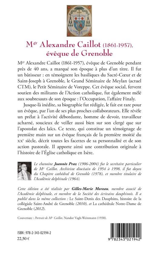 Mgr Alexandre Caillot, évêque de Grenoble pendant près de 40 ans, fut un grand bâtisseur, en témoigne les basiliques du Sacré-Coeur ou de Saint-Joseph à Grenoble, et fut également mêlé aux soubresauts de son époque : l'Occupation, l'affaire Finaly. Cette biographie inédite, révèle un prélat à l'activité débordante, homme de devoir, travailleur, soucieux de veiller sur son clergé et sur l'apostolat des laïcs. Ce texte décrit toutes les facettes de sa personnalité et de son action pastorale.