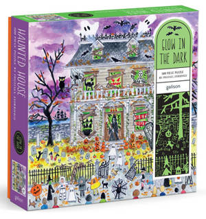 500 PIECE PUZZLE - Michael Storrings Haunted House 500 Piece Glow in the Dark Puzzle by Galison features a fun haunted house scene for Halloween. Simply assemble the puzzle, turn off the lights, and watch for a glow in the dark surprise! This puzzle is just the right level of challenge for the whole family to join in on for hours of puzzling fun! The box includes an insert with the full puzzle image for reference.