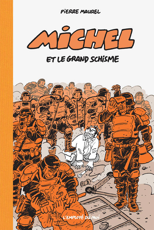Michel, le quarantenaire râleur et hirsute créé par Pierre Maurel nous revient pour un troisième épisode. Cette fois, l’amour, le vrai, celui pour lequel on passe l’aspirateur, semble bien avoir frappé à sa porte. Mais les emmerdes ne cessent pas de pleuvoir pour autant. Dans une France traversée par les conflits sociaux, impossible pour Michel de rester indifférent et de garder son matériel de reporter en poche, ni sa langue d’ailleurs. Comme il n’est pas vraiment taillé pour l’aventure, c’est aussi sous une pluie de coups durs, pas toujours métaphoriques, que notre antihéros bedonnant va courir. Qu’il nous promène au milieu des lacrymogènes pendant une manifestation des gilets jaunes, dans un vernissage d’art contemporain, dans les petits boulots d’intérim ou le long d’un sentier de campagne verdoyant, Michel est toujours furieusement proche de nous, de nos espoirs, de nos coups de gueule et interrogations sans réponses sur ce monde hyperconnecté et pourtant bien terre à terre qui est le nôtre. Pierre Maurel décortique, avec son dessin nerveux et ses figures saisies sur le vif, les travers de notre époque. Avec drôlerie, intelligence, et au travers de situations et d’un personnage plus complexe qu’ils n’en ont l’air. Michel, Le Grand schisme est le dernier opus de la trilogie entamé avec Les Temps modernes en 2018. Pour l’auteur, c’est l’occasion d’aborder sous l’angle d’une comédie de mœurs à la fois sympathique et grinçante des thématiques liées à l’actualité. Les mouvements sociaux d’aujourd’hui, les trottinettes géolocalisées, mais aussi un furieux désir de changer le modèle de notre société. Ce dernier opus se veut plus jovial et ouvert sur l’inconnu.