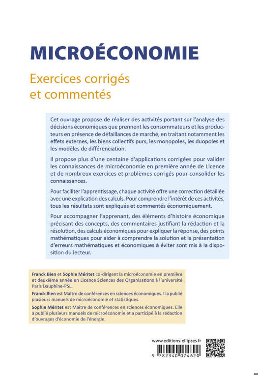 - de nombreux compléments : éléments d’histoire économique, calculs économiques pour expliquer la réponse, points mathématiques pour aider à comprendre la solution et présentation d’erreurs mathématiques et économiques à éviter.