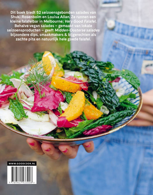 Maak in de zomer een heerlijke fattoush met watermeloen of serveer gegrilde abrikozen met spinazie, hazelnoten & saffraanolie. Geniet in de herfst van geroosterde kweeperen met parelgort, pistache- & walnoten. Verras je tafelgenoten met een winterse wortelsalade van sinaasappel, dadels & groene pepers. Serveer een frisse lentesalade met radijs, selderij, tuinbonen & munt.