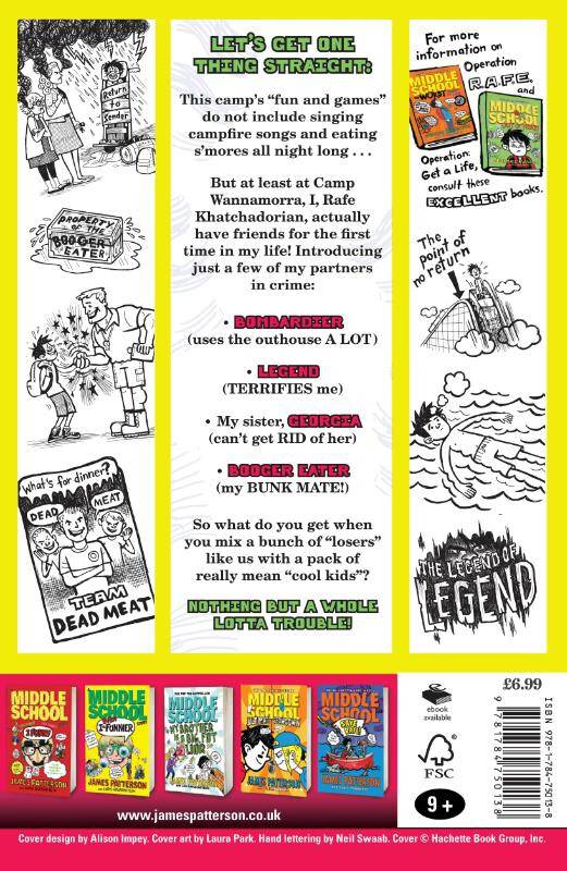 Rafe Khatchadorian, the hero of the bestselling Middle School series, is ready for a fun summer at camp - until he finds out it's a summer school camp! Luckily, Rafe easily makes friends with his troublemaking cabin mates and bunkmate, a boy nicknamed Booger Eater, who puts up with endless teasing from the other kids.