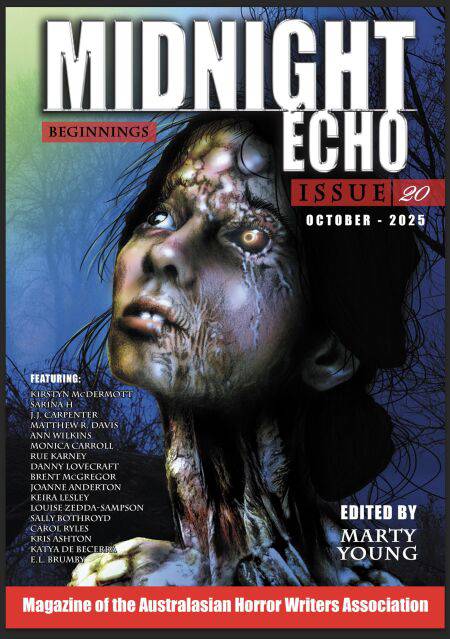 The 20th Anniversary issue of the magazine of the Australasian Horror Writers Association, edited by Marty Young. This issue contains fiction, non-fiction, art, and poetry by Kirstyn McDermott, Sarina H, J.J. Carpenter, Matthew R. Davis, Anne Wilkins, Monica Carroll, Rue Karney, Charles Lovecraft, Brent McGregor, Joanne Anderton, Kiera Lesley, Sally Bothroyd, Louise Zedda-Sampson, Carol Ryles, Katya de Becerra, E.L. Brumby, Kris Ashton, C.H. Pearce, and Red Wallflower.