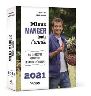 Mieux manger toute l'année - millésime 2021 avec Laurent Mariotte c'est toujours 365 jours / 365 recettes, mais aussi des focus sur les produits de saison mois par mois, des astuces pour s'initier aux basiques du fait maison, des conseils anti-gaspillages, des coups de coeur et coups de gueule du journaliste.