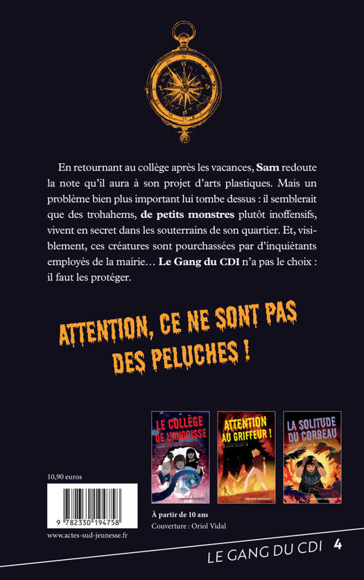 En retournant au collège après les vacances, Sam redoute la note qu'il aura à son projet d'arts plastiques. Mais un problème bien plus important lui tombe dessus : il semblerait que des trohahems, des petits monstres plutôt inoffensifs, vivent en secret dans les souterrains de son quartier. Et, visiblement, ces créatures sont pourchassées par d'inquiétants employés de la mairie... Le Gang du CDI n'a pas le choix : il faut les protéger.