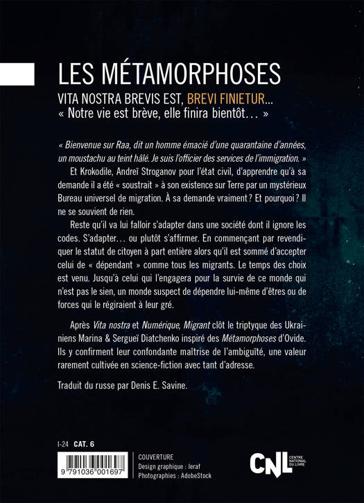 Après Vita nostra et Numérique, Migrant clôt le triptyque des Ukrainiens Marina & Serguei Diatchenko inspiré des Métamorphoses d'Ovide. Ils y confirment leur confondante maîtrise de l'ambiguïté, une valeur rarement cultivée en science-fiction avec tant d'adresse.