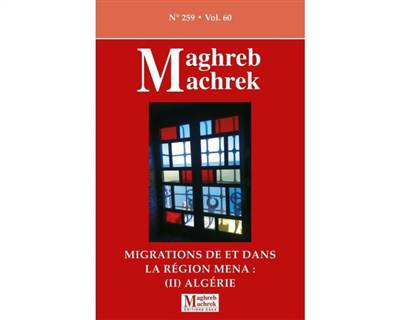 INTRODUCTION : Approches sociologiques des migrations de et dans la région MENA : Algérie ARTICLES : 1/ Déterminants de l'émigration internationale : étude appliquée à la région MENA 2/ Intentions de migration des diplômés universitaires de Bejaia (Algérie) 3/ Impact de la naturalisation et des canaux informels sur les transferts de fonds vers l'Afrique du Nord : focus sur l'Algérie 4/ Migrations irrégulières des subsahariens en Afrique du Nord : le cas de l'Algérie VARIA : l'Algérie et les BRICS : Quelle est la forme de coopération la plus utile pour l'Algérie ?