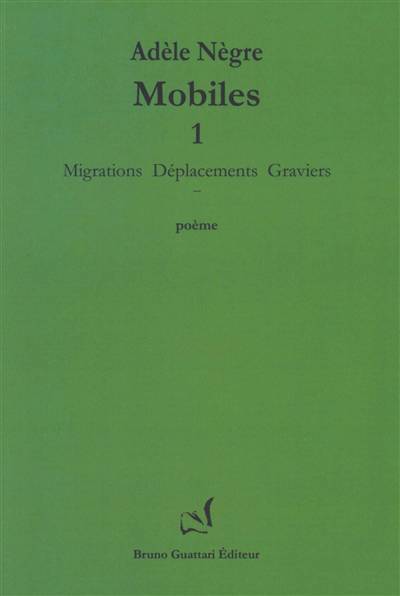 Migrations Déplacements Graviers est le premier volet du triptyque Mobiles. Le poème qui se meut ici est issu du carnet du premier semestre 2019. Adèle Nègre, prenant appui sur son quotidien, observe et s'interroge à partir des différents motifs qui, au gré des transformations saisonnières, des changements de lumières ou des micros-évènements, le composent. Ce sont ces motifs (ou ses mobiles) qui, trouvant des échos dans la fréquentations des textes ou des images d'autres auteurs (et créateurs), mettent en mouvement l'écriture et font advenir le poème, non comme une résolution mais plutôt comme un dialogue ininterrompu, un chant.