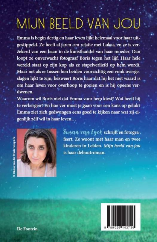 Susan van Eyck debuteert met 'Mijn beeld van jou' een feelgoodroman voor de fans van Jojo Moyes, John Green en Chantal van Gastel. Emma is begin dertig en lijkt alles voor elkaar te hebben – al jaren dezelfde vriend, haar carrière uitgestippeld – tot ze Boris tegen het lijf loopt. Deze fotograaf zet haar veilige wereld op zijn kop als ze halsoverkop verliefd op hem wordt. Maar net als er voorzichtig een vonk overgeslagen lijkt te zijn, bezweert hij haar dat hij het niet waard is om haar leven voor overhoop te gooien en is hij opeens verdwenen. Waarom wil Boris niet dat Emma voor hem kiest? En kan Emma nog terug naar haar veilige leventje, of gaat ze op zoek naar antwoorden?