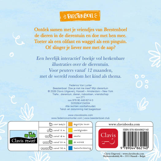 Ontdek samen met je vriendjes van Beestenboel de dieren in de dierentuin en doe met hen mee. Toeter als een olifant en waggel als een pinguïn. Of slinger je liever mee met de aap?