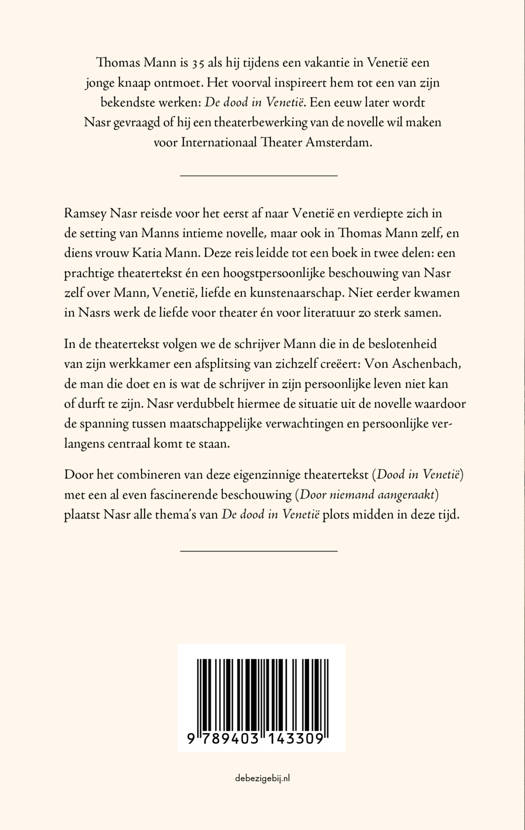 Ramsey Nasr reisde voor het eerst af naar Venetië en verdiepte zich in de setting van Manns intieme novelle, maar ook in Thomas Mann zelf, en diens vrouw Katia Mann. Dit resulteerde in een weergaloze theatertekst waarin ook het schrijversechtpaar Mann als personages opgevoerd worden.