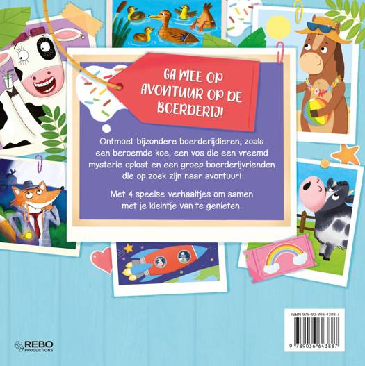 Ontmoet bijzondere boerderijdieren, zoals een beroemde koe, een vos die een vreemd mysterie oplost en een groep boerderijvrienden die op zoek zijn naar avontuur!