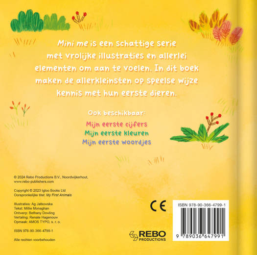 Mini me is een schattige serie met vrolijke illustraties en allerlei elementen om aan te voelen. In dit boek maken de allerkleinsten op speelse wijze kennis met hun eerste dieren.