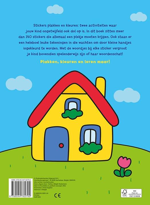 Stickers plakken en kleuren: twee activiteiten waar jouw kind ongetwijfeld ook dol op is. In dit boek zitten meer dan 140 stickers die allemaal een plekje moeten krijgen. Ook staan er een heleboel leuke tekeningen in die wachten om door kleine handjes ingekleurd te worden. Met de woordjes bij elke sticker vergroot je kind bovendien spelenderwijs zijn of haar woordenschat! Plakken, kleuren en leren maar!