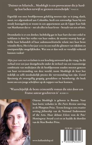 Mijn jaar van rust en kalmte is een krachtig antwoord op die vraag. In dit verhaal over een jaar doorgebracht onder de invloed van een waanzinnige combinatie van drugs die de hoofdpersoon zouden moeten genezen van haar vervreemding van deze wereld, toont Moshfegh de lezer hoe redelijk en zelfs noodzakelijk precies die vervreemding kan zijn. Zowel fijnzinnig als zwartgallig grappig, genadeloos en barmhartig: dit boek toont ons een jonge, veelbelovende schrijfster op de toppen van haar kunnen.