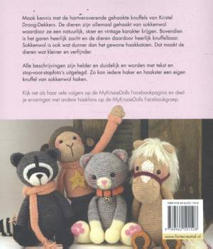 Kristel Droog heeft al een hele schare fans verzameld met haar hartveroverende gehaakte knuffels. Meer dan 9500 volgers volgen haar MyKrissieDolls Facebookpagina en ruim 9000 haaksters delen hun ervaringen op haar MyKrissieDolls Facebookgroep. De dieren zijn allemaal gehaakt van sokkenwol waardoor ze een natuurlijk, stoer en vintage karakter krijgen. Bovendien is het garen heerlijk zacht en de dieren daardoor erg knuffelbaar. Sokkenwol is ook wat dunner dan het gewone haakkatoen. Dat maakt de dieren wat kleiner en verfijnder. Alle beschrijvingen zijn helder en duidelijk en worden met tekst en stap-voor-stapfoto's uitgelegd. Zo komt het haken van een knuffels van sokkenwol binnen ieders bereik.