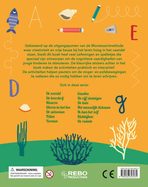 Gebaseerd op de uitgangspunten van de Montessorimethode waar creativiteit en vrije keuze bij het leren hoog in het vaandel staan, biedt dit boek heel veel oefeningen en spelletjes die speciaal zijn ontworpen om de cognitieve vaardigheden van jonge kinderen te stimuleren. De kleurrijke stickers achter in het boek maken de activiteiten praktisch en interactief. De activiteiten helpen peuters om de vinger- en polsbewegingen te oefenen die ze nodig hebben om te leren schrijven.