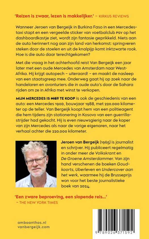 Mijn Mercedes is niet te koop is ook de geschiedenis van een auto: een Mercedes 190D, bouwjaar 1988, 220.000 kilometer op de teller. Van Bergeijk koopt hem van een politeagent die hem tijdens zijn stationering in Kosovo van een guerrillastrijder kocht. Hij is even nieuwsgierig naar de koper van zijn Mercedes als naar de vorige eigenaren, naar het verhaal achter die 220.000 kilometer.