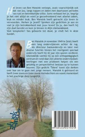 Het leven van Ben Wansink verloopt, zoals waarschijnlijk ook dat van jou, langs toppen en dalen met daartussen periodes van rust en betrekkelijke stilte. Soms verbaast het je, begrijp je het niet altijd en word je geconfronteerd met allerlei zaken, leuk en minder leuk. Ben Wansink heeft getracht zijn leven te verwoorden. Herken je jezelf? Spreken zijn gedichten je aan en voel je zijn betrokkenheid met jouw leven? Zo ja, dan heeft hij zijn doel bereikt en kom je binnen in Mijn niemandsland. Veel leesplezier! Van geboorte tot dood, je vindt het in deze bundel.