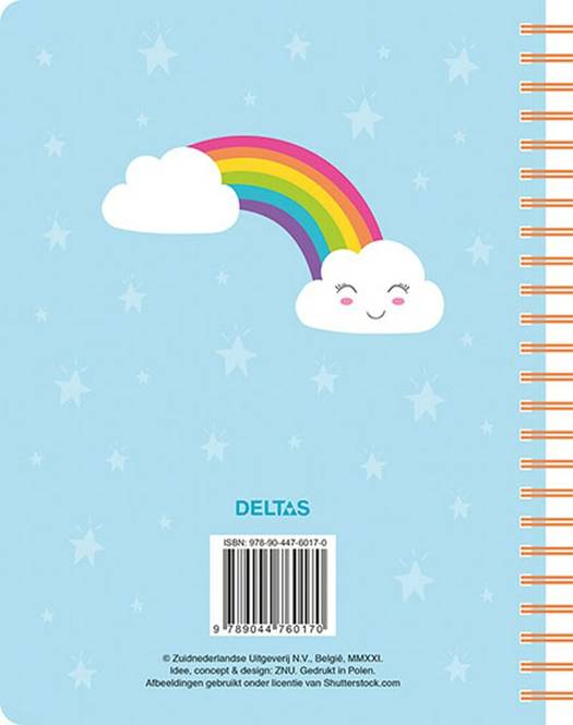 Vrolijk vormgegeven notitieboekje van Deltas met spiraalbinding en stevige, flexibele kaft voor fans van unicorns en regenbogen. De pagina's met lijntjes worden opgevrolijkt door kleine illustraties. Ideaal om al je notities, ideeën of lijstjes in op te schrijven en te bewaren!