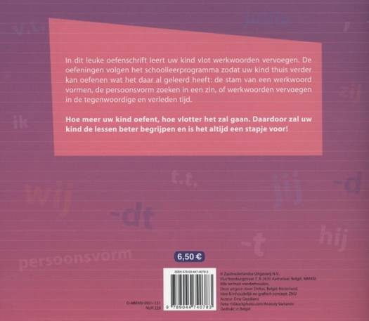 In dit leuke oefenschrift leert uw kind vlot werkwoorden vervoegen. De oefeningen volgen het schoolleerprogramma zodat uw kind thuis verder kan oefenen wat het daar al geleerd heeft: de stam van een werkwoord vormen, de persoonsvorm zoeken in een zin, of werkwoorden vervoegen in de tegenwoordige en verleden tijd. Hoe meer uw kind oefent, hoe vlotter het zal gaan. Daardoor zal uw kind de lessen beter begrijpen en is het altijd een stapje voor!
