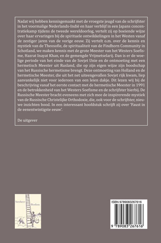 Nadat wij hebben kennisgemaakt met de vroegste jeugd van de schrijfster in het voormalige Nederlands-Indië en haar verblijf in een Japans concentratiekamp tijdens de tweede wereldoorlog, vertelt zij op boeiende wijze over haar ervaringen bij de spirituele ontwikkelingen in het Westen vanaf de zestiger jaren van de vorige eeuw. Zij vertelt o.m. over de kennis en mystiek van de Theosofie, de spiritualiteit van de Findhorn Community in Schotland, we maken kennis met de grote Meester van het Westers Soefisme, Hazrat Inayat Khan, en de gemengde Vrijmetselarij. Dan is er de woelige periode van het einde van de Sovjet Unie en de ontmoeting met een hermetisch Meester uit Rusland, die op zijn eigen wijze zijn boodschap van het Russische hermetisme brengt. Deze ontmoeting van Holland en de hermetische Meester, die uit het net uiteengevallen Sovjet rijk kwam, liep aanvankelijk niet voor iedereen van een leien dakje. Dit lezen wij bij de beschrijving vanaf het eerste contact met de hermetische Meester in 1991 en de betrokkenheid van het Westers Soefisme en de schrijfster hierbij. De Russische Meester bracht eveneens met zich mee de inspirerende mystiek van de Russische Christelijke Orthodoxie, die, ook voor de schrijfster, nieuwe inzichten bood. In een interessant hoofdstuk schrijft zij over 'Faust in de eenentwintigste eeuw'.