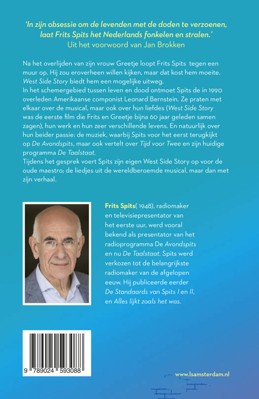 In het schemergebied tussen leven en dood ontmoet Spits de overleden Amerikaanse componist Leonard Bernstein. Ze praten met elkaar over de musical, maar ook over hun liefdes (West Side Story was de eerste film die Frits en Greetje samen zagen), hun werk en zeer verschillende levens. En natuurlijk over hun beider passie: muziek, waarbij Spits voor het eerst terugkijkt op De Avondspits, maar ook praat over Tijd voor Twee en zijn huidige programma De Taalstaat.