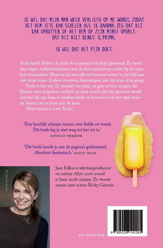 Met 'Mijn zoete wraak' ('My Sweet Revenge') is Jane Fallon terug, scherper en sterker dan ooit! Paula heeft Robert al sinds de toneelschool altijd gesteund, ze heeft haar eigen dromen opgegeven zodat hij de zijne kon waarmaken, en nu hij een gevierd acteur is ziet hij haar niet meer staan. Andere vrouwen daarentegen ziet hij maar al te graag.Paula heeft een plan. Ze zorgt dat Robert weer hopeloos verliefd op haar wordt, dat hij beseft hoeveel hij aan haar te danken heeft, en wat er op het spel staat. Pas daarna zal zij hem aan de kant zetten.Want wraak is zoet. Toch? Jane Fallon is televisieproducent en auteur. 'Mijn zoete wraak' is haar zesde roman. Ze woont samen met acteur Ricky Gervais.