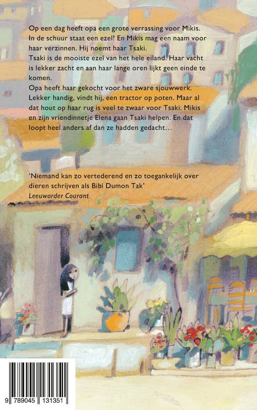 Op een dag heeft opa een grote verrassing voor Mikis. In de schuur staat een ezel! En Mikis mag een naam voor haar verzinnen. Hij noemt haar Tsaki.