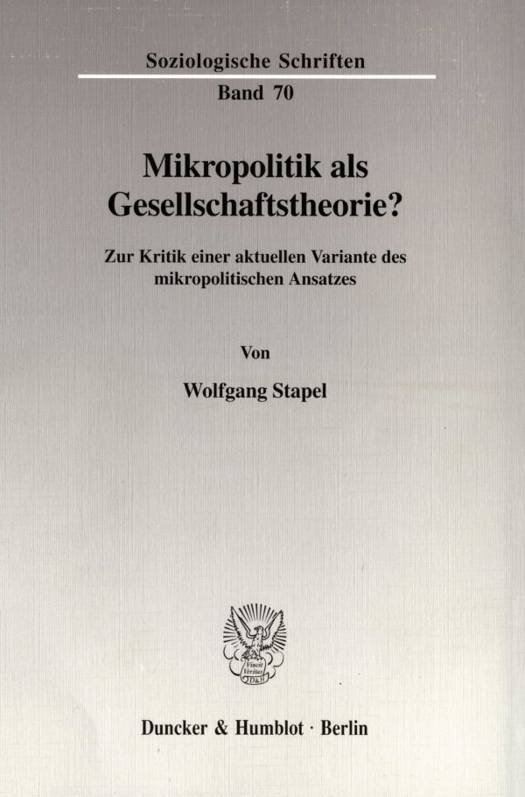 Die in der Arbeit von Wolfgang Stapel geführte Auseinandersetzung über die Mächtigkeit und Reichweite des sog. mikropolitischen Ansatzes reflektiert eine alte und zugleich hochaktuelle Diskussion. Im engeren Kontext der Betriebswirtschaftslehre wäre sie unter den Stichworten »Zieltheorie«, »Organisationstheorie« und »Mikropolitik-Theorie« zu subsumieren - in ihrer grundsätzlichen Bedeutung reicht sie gleichwohl weit darüber hinaus.