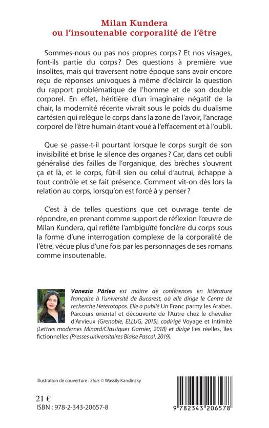 Sommes-nous ou pas nos propres corps ? Et nos visages, font-ils partie du corps ? Des questions à première vue insolites, mais qui traversent notre époque sans avoir encore reçu de réponses univoques à même d'éclaircir la question du rapport problématique de l'homme et de son double corporel. C'est à de telles questions que cet ouvrage tente de répondre, en prenant comme support de réflexion l'oeuvre de Milan Kundera, qui reflète l'ambiguïté foncière du corps sous la forme d'une interrogation complexe de la corporalité de l'être, vécue plus d'une fois par les personnages de ses romans comme insoutenable.