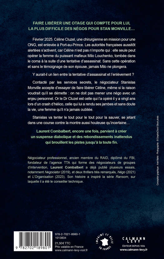 Contacté par les services secrets, le négociateur Stanislas Monville accepte d'essayer de faire libérer Céline, même si la raison voudrait qu'il se démette : on ne doit pas mener une négo avec un enjeu personnel. Or le Dr Cluzel est celle qui l'a opéré il y a vingt ans lors d'un crash d'hélico, celle qui lui a rendu ses jambes et sans doute la vie, une femme qu'il n'a jamais oubliée.