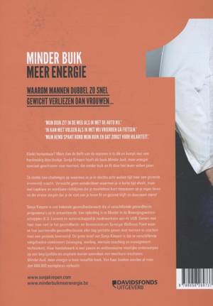 'Ik kan niet volgen als ik met mijn vrienden gaKlinkt herkenbaar? Meer dan de helft van de Vlaamse mannen is te dik en kampt met een hardnekkig (bier)buikje. Maar daar brengt Sonja Kimpen met haar nieuwste boek verandering in. Minder buik, meer energie is speciaal geschreven voor mannen, die zonder buik én fit door het leven willen gaan.