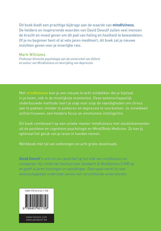 Met mindfulness kan je een nieuwe kracht ontdekken die je bijstaat in je leven, ook in de moeilijkste momenten. Deze wetenschappelijk onderbouwde methode leert je stap voor stap de vaardigheden om stress aan te pakken, minder te piekeren en depressie te voorkomen. Je ontwikkelt zelfvertrouwen, een heldere focus en emotionele intelligentie. Dit boek combineert op een unieke manier mindfulness met sleutelelementen uit de positieve en cognitieve psychologie en Mind/Body Medicine. Zo kan jij optimaal het geluk van je leven in handen nemen. Werkboek met tal van oefeningen en acht gratis downloads.