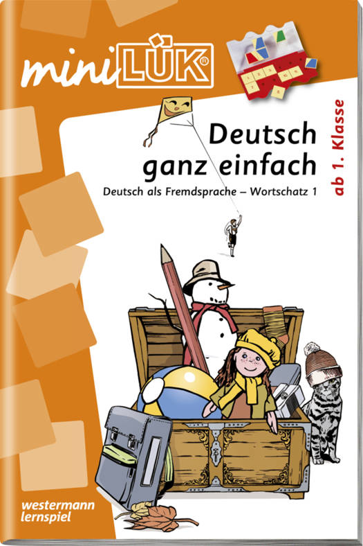 Ob Hund, Katze, Maus oder Sonne und Mond. Das miniLÜK-Übungsheft "Deutsch ganz einfach" (Wortschatz 1) enthält einfache Wortschatzübungen zum Deutsch lernen - sowohl für Kinder und Jugendliche als auch für Erwachsene. Die Vokabeln werden zunächst in bebilderten Worfeldern vorgestellt und im Anschluss mithilfe von miniLÜK-Übungen inklusive der passenden Artikel gefestigt.