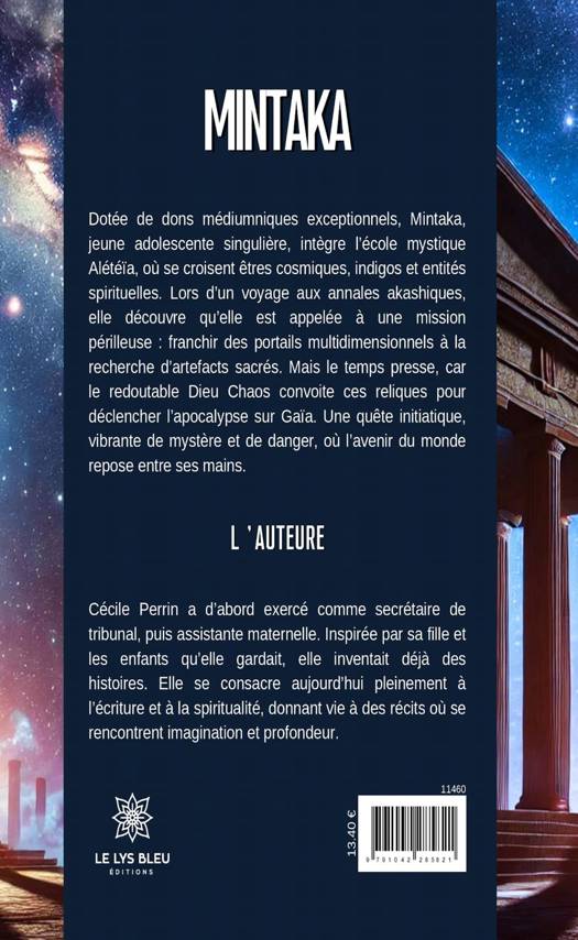 Dotée de dons médiumniques exceptionnels, Mintaka, jeune adolescente singulière, intègre l'école mystique Alétéïa, où se croisent êtres cosmiques, indigos et entités spirituelles. Lors d'un voyage aux annales akashiques, elle découvre qu'elle est appelée à une mission périlleuse : franchir des portails multidimensionnels à la recherche d'artefacts sacrés. Mais le temps presse, car le redoutable Dieu Chaos convoite ces reliques pour déclencher l'apocalypse sur Gaïa. Une quête initiatique, vibrante de mystère et de danger, où l'avenir du monde repose entre ses mains.