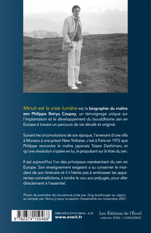 Minuit est la vraie lumière est la biographie du maître zen Philippe ReiRyu Coupey, un témoignage unique sur l'implantation et le développement du bouddhisme zen en Europe à travers un parcours de vie décalé et original. Suivant les circonvolutions de son époque, l'amenant d'une villa à Monaco à une prison New Yorkaise, c'est à Paris en 1972 que Philippe rencontre le maître japonais Taisen Deshimaru et qu'une révolution s'opère en lui, le propulsant sur la Voie du zen. Il est aujourd'hui l'un des principaux représentant du zen en Europe. Son enseignement exigeant a su conserver le mordant de son itinéraire et il n'hésite pas à embrasser les apparentes contradictions, à tordre le cou aux préjugés, pour aller directement à l'essentiel.