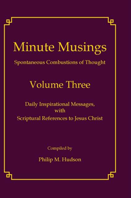 "Minute Musings" will transport you from the everyday world into the rarefied atmosphere of a realm that focuses its attention on our Savior Jesus Christ. Its insights, that are designed to turn your thoughts to Him, will help you to turn you bad days into good days, and your good days into outstanding days. Unlike other self-help guides, its kernels of thought are meant to be consciously and unconsciously rolled over in your mind throughout the day, to make it easier to capture the Holy Spirit that will serve as your guide. The author has relied on a lifetime of dedicated discipleship to keep you entertained not only with wit but also with wisdom. More importantly, it is your application of the principles that are illustrated in "Minute Musings" that will strengthen your commitment to follow the Lord, and that will bless you each and every day of your life.